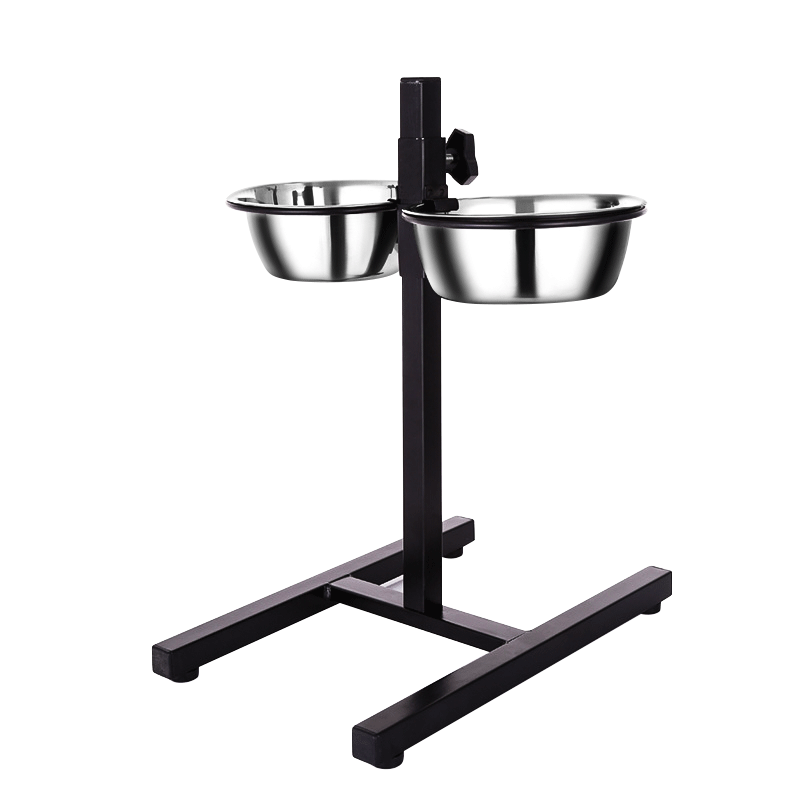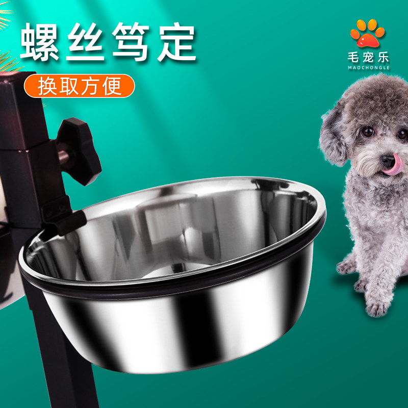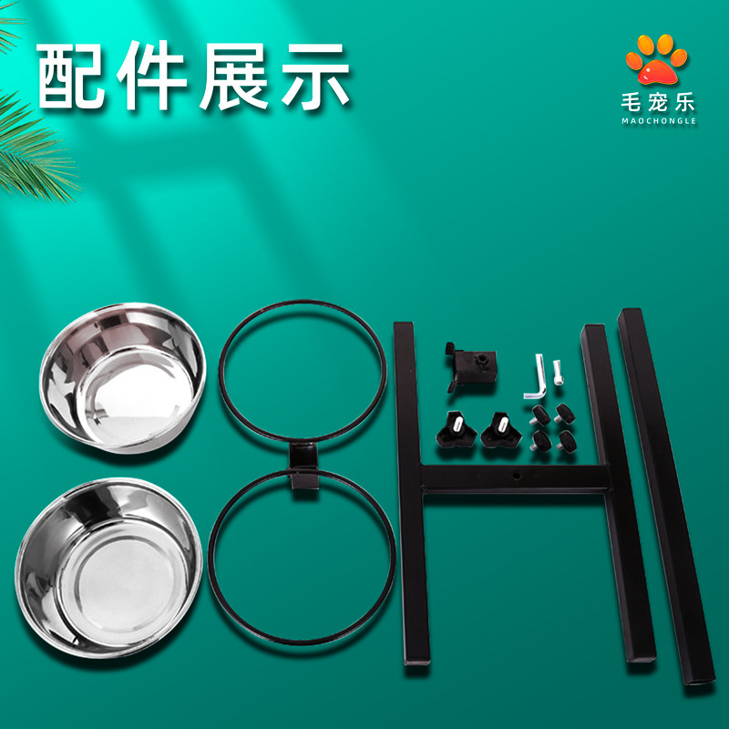 Dog basin with bracket anti-skid hanging fixed stainless steel dog bowl large and medium-sized dog and cat double bowl anti-overturning high-footed water basin