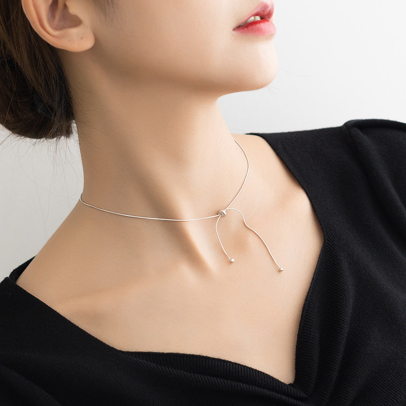 Snake bone neck Net red choker 925 sterling silver necklace female Joker bow to send girlfriends tide Valentine's Day gift