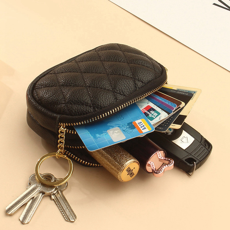 Head Layer Bull Leather Magna Lady Key Bag Han Version Genuine Leather Key Bag Embroidered Double Layer Large Capacity Pull Chain Zero Wallet