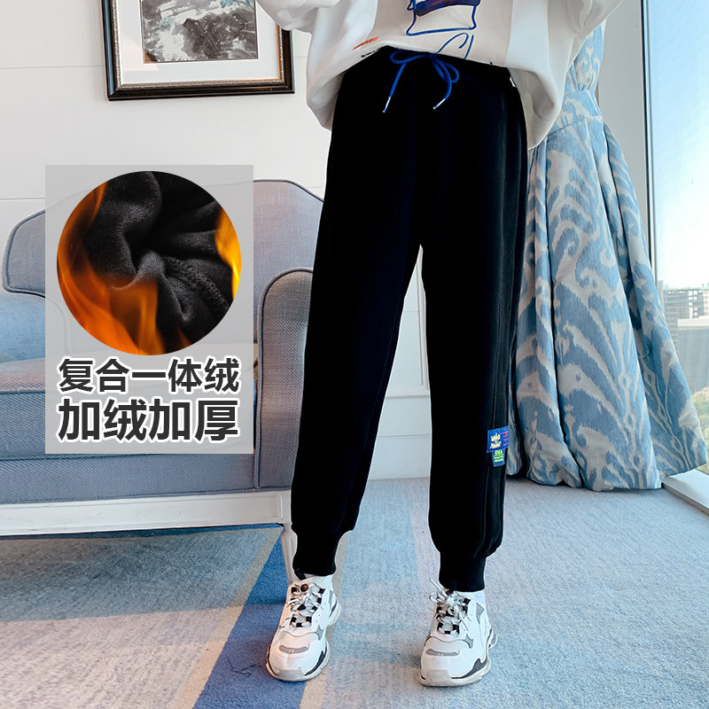 Girl Plus Suede Pants 2021 Autumn Winter New CUHK Children Foreign Pie Outside Wearing Thickened Casual Thick Cotton Pants Children Sports Pants