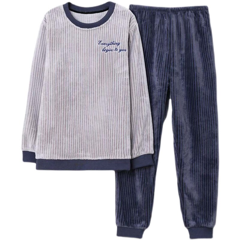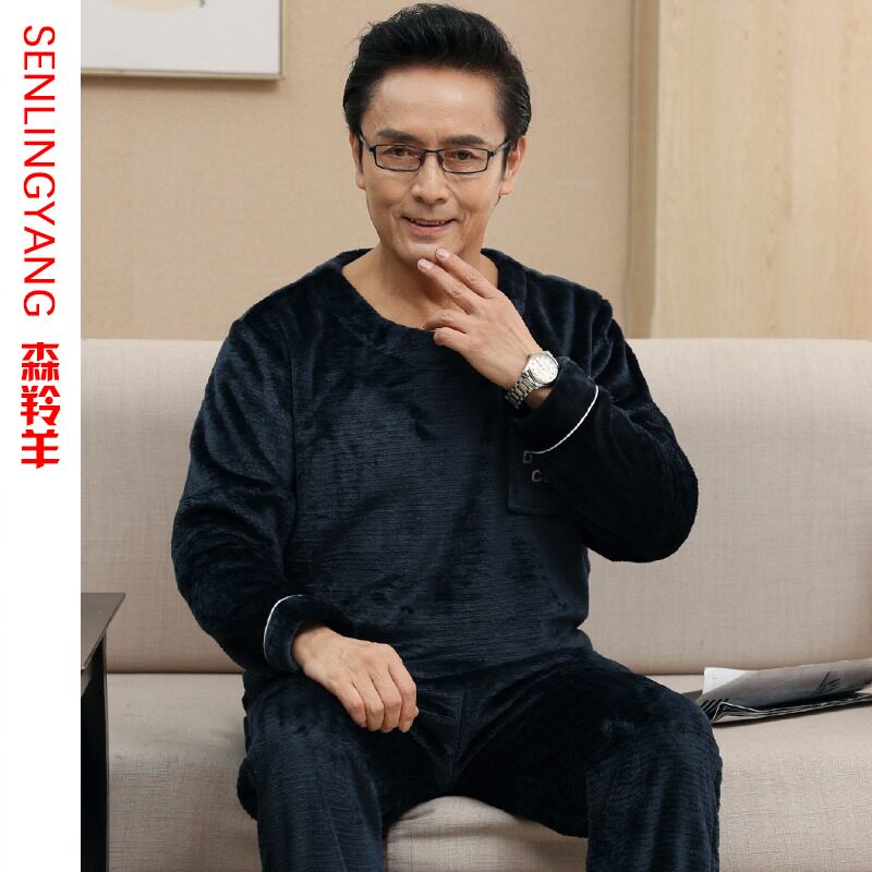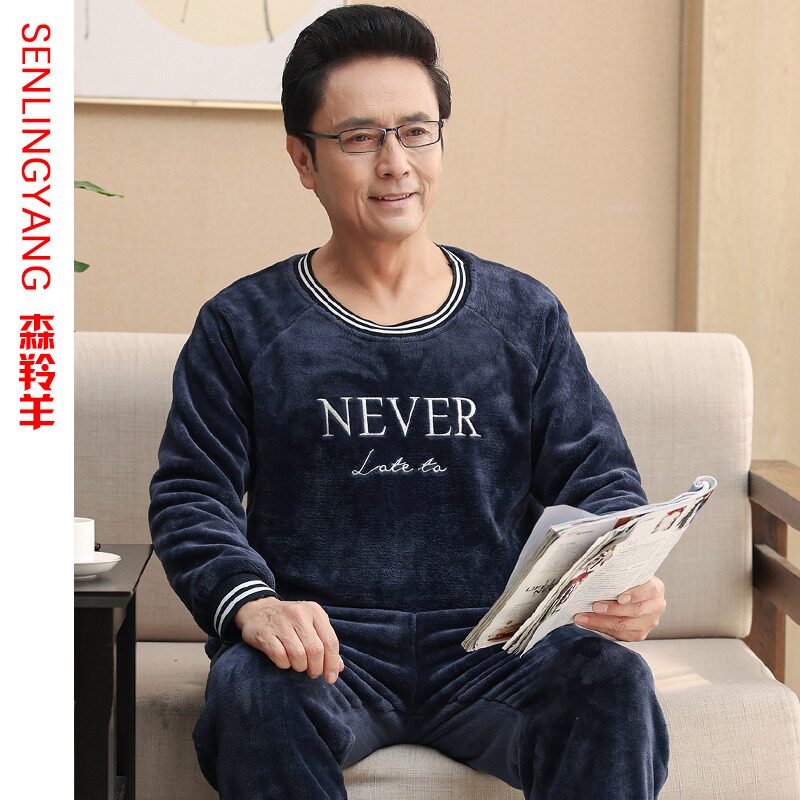 Middle Aged Sleeping Clothes Men Autumn Winter Dad Winter Coral Suede Thickened Garnter Warm Flannel Suede Suit-Taobao