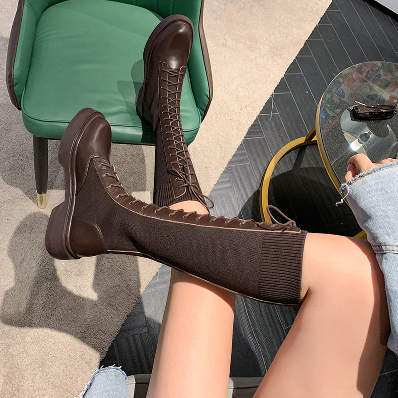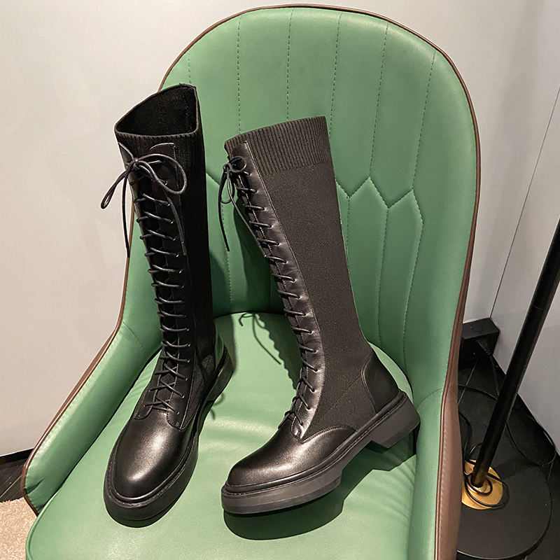 Long boots women's 2022 autumn and winter new riding boots high tube thin elastic but knee thick bottom long socks boots