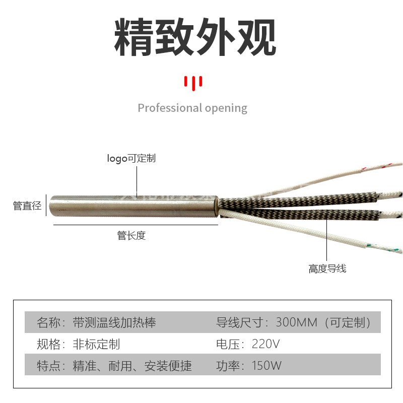 Single-head heating tube Die-head heating rod High-density single-head electric heating tube with K-type thermocouple can be customized
