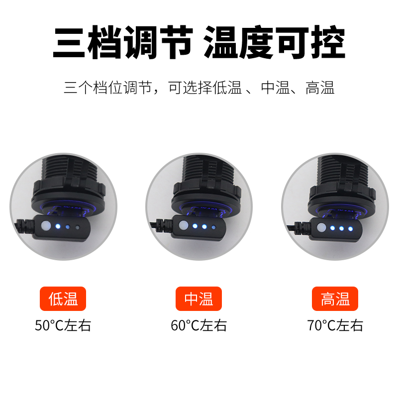 Three-speed temperature adjustment USB power supply three-speed temperature adjustment-12V wiring waterproof logo light-emitting (motorcycle universal) blue LOGO-three-speed temperature adjustment USB electricity collection