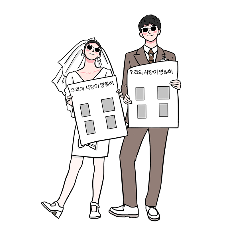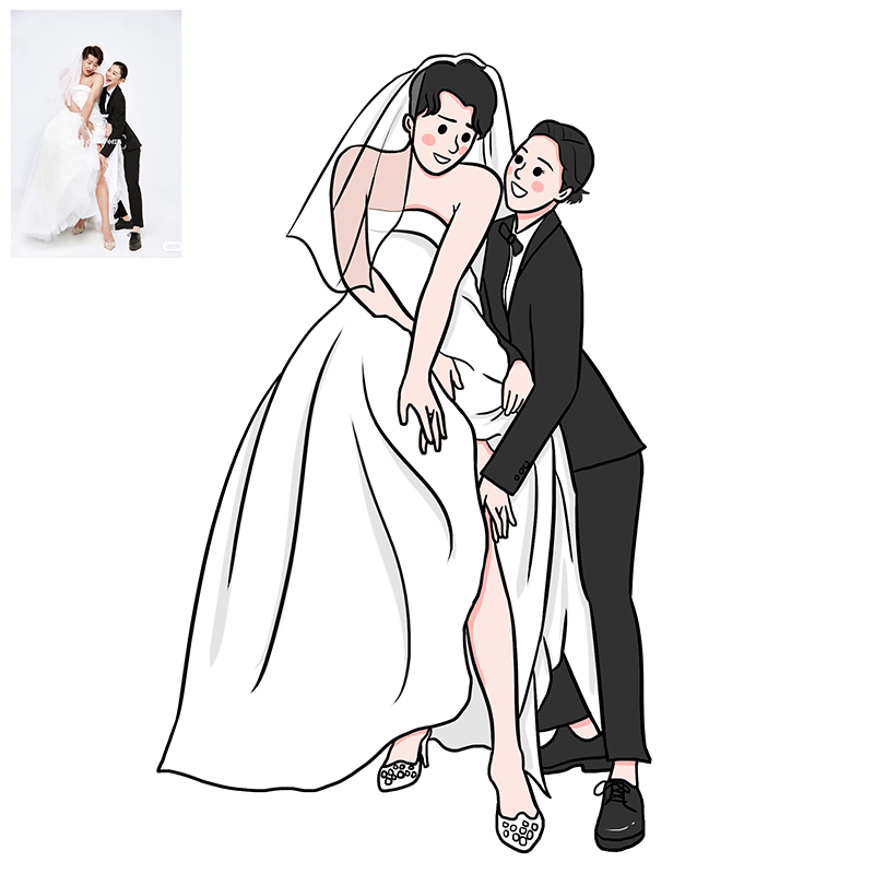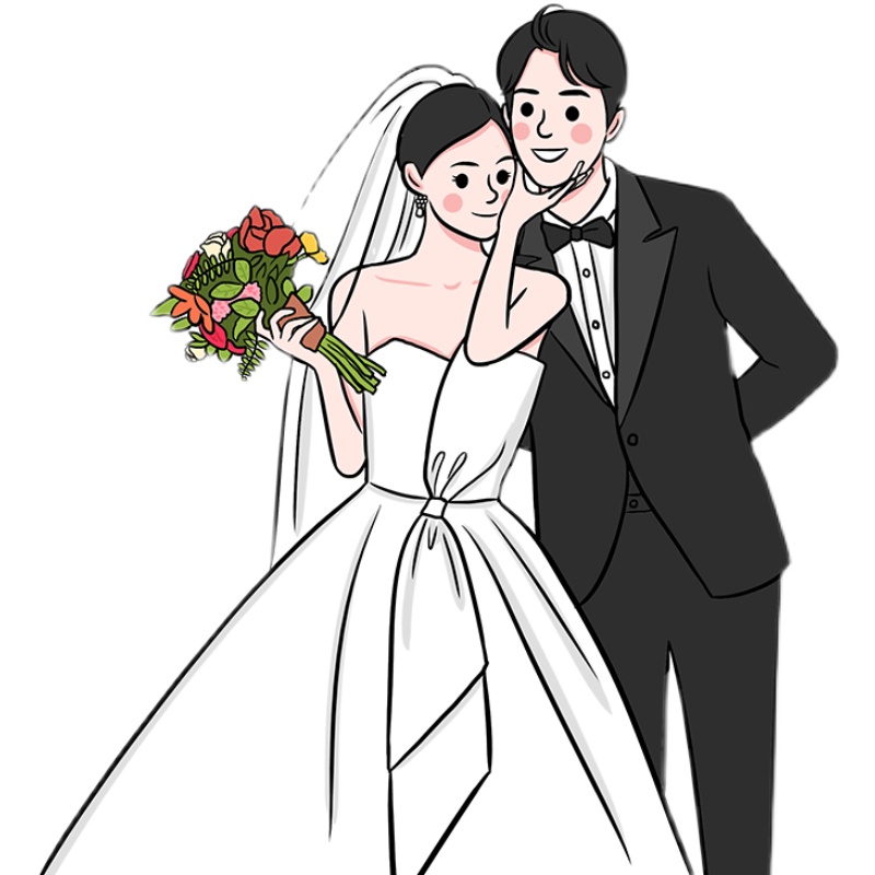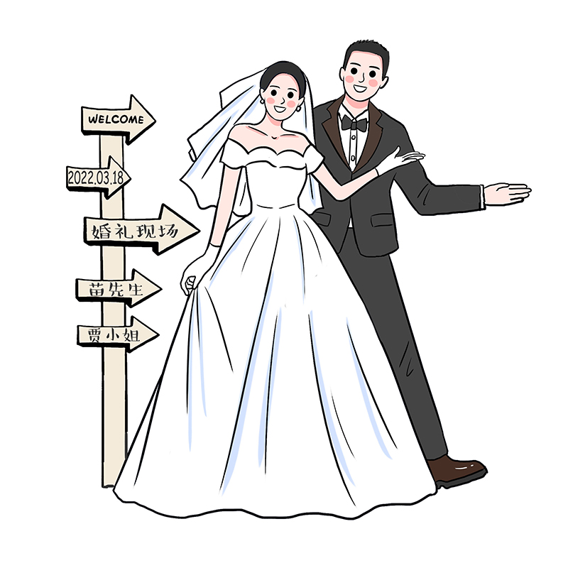 Hand-painted Q Version Lovers Avatar Color Minimalist Stroke Cartoon Cartoon Character Live-action Photos Wedding Standing Cards Design