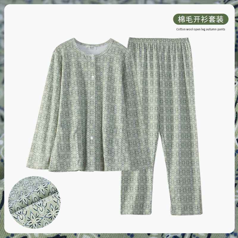 Fall and Winter Mommy Long-sleeved Cotton Nightjacket Middle-aged Lady Sweater All Cotton Fatty and Breakfast Household Clothing