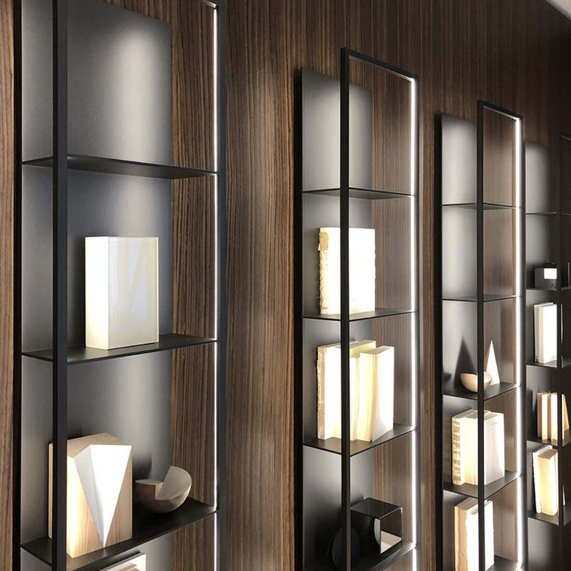 LED laminate luminous wall decoration shelf with light clapboard living room display stand wrought iron wall hanging bookshelf