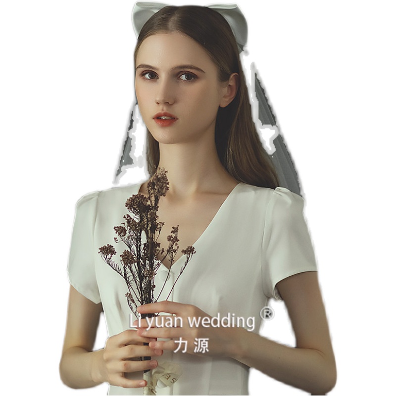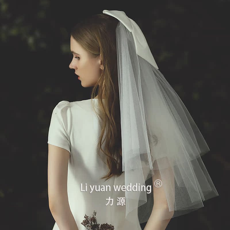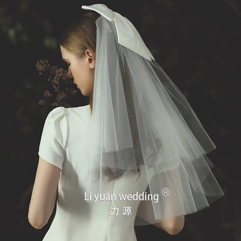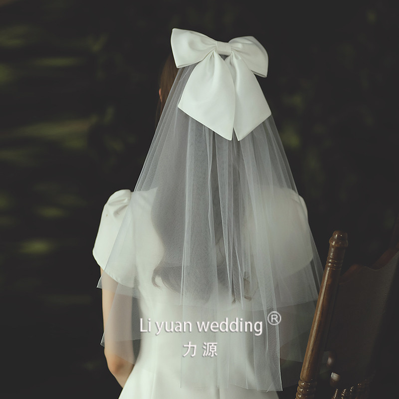 Bride's double-layer short veil Korean-style big bow hair accessories Super Fairy Sen series 2021 autumn new wedding accessories