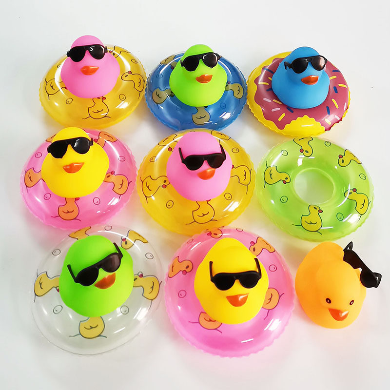 10 Hong Kong ducks (5 colors 2 each) 20 Hong Kong ducks (5 colors 4 each) 50 Hong Kong ducks (5 colors 10 each) 4 with glasses 8 Hong Kong ducks 4 small swimming rings 8
