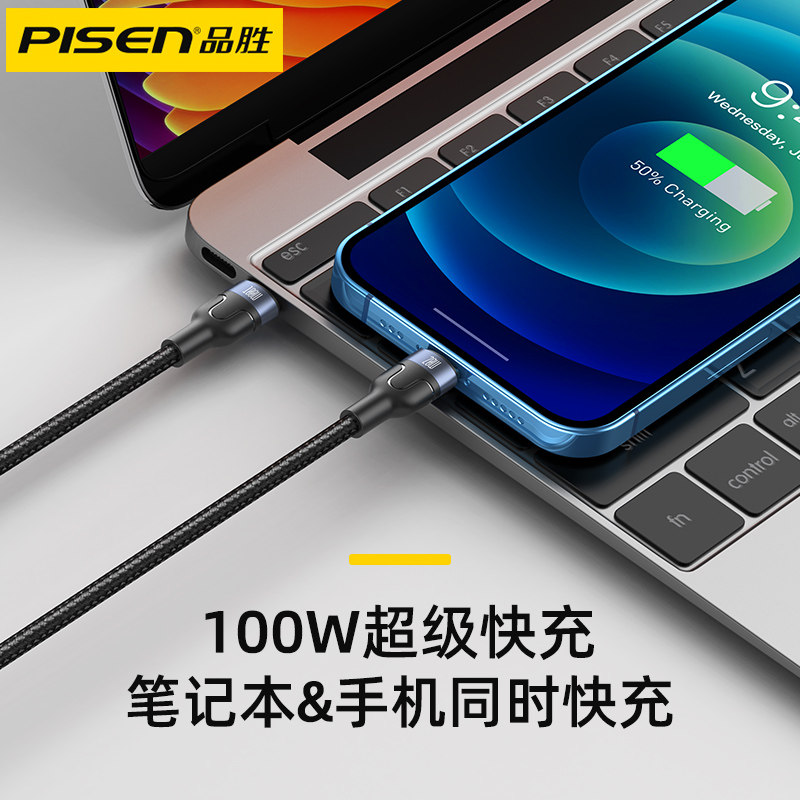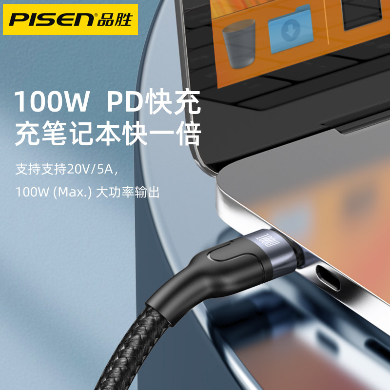 Pinsheng two-in-one 100w fast charging data cable double-headed Android typec male to male 6A charging cable one for two 5A suitable for Huawei 20W flash charging Apple ipad tablet notebook multi-purpose
