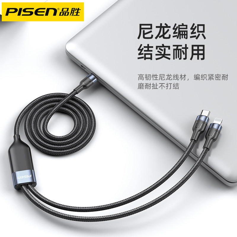 Pinsheng One-to-Two Fast Charge Data Cable 1 5m (Magic Black) Aluminum Alloy Braided★