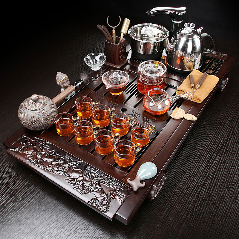 Special size black sandalwood tea tray solid wood with induction stove integrated home office tea table simple tea sea depository dish suit