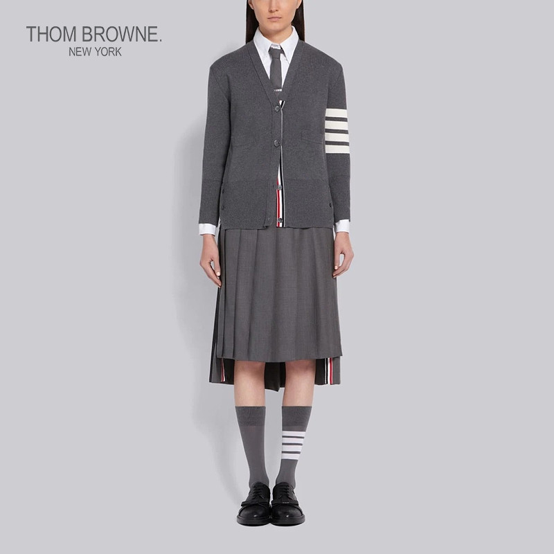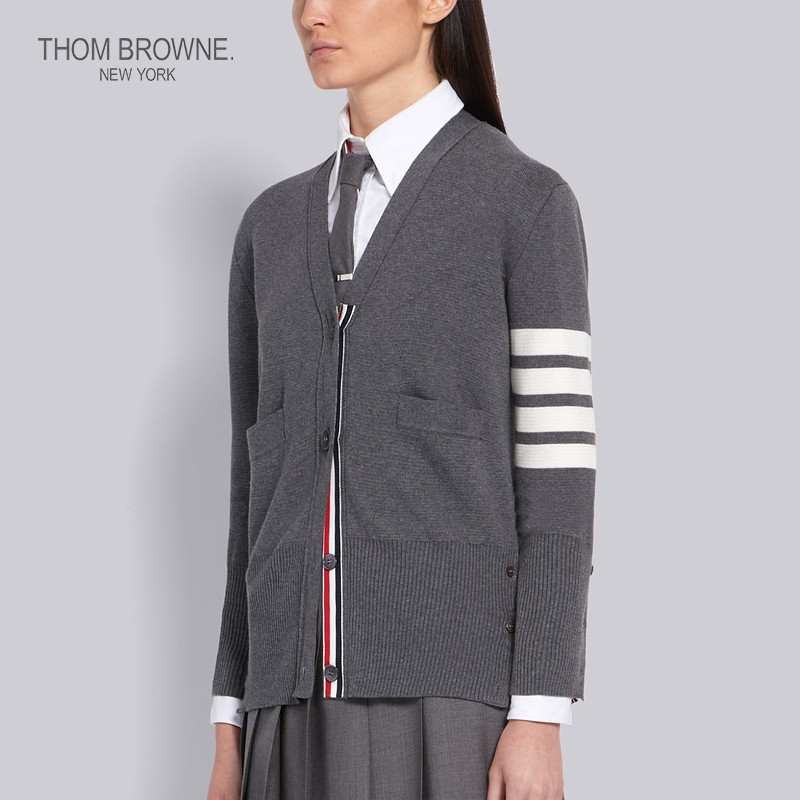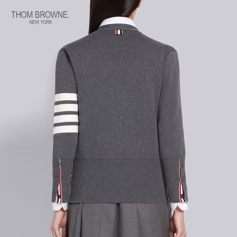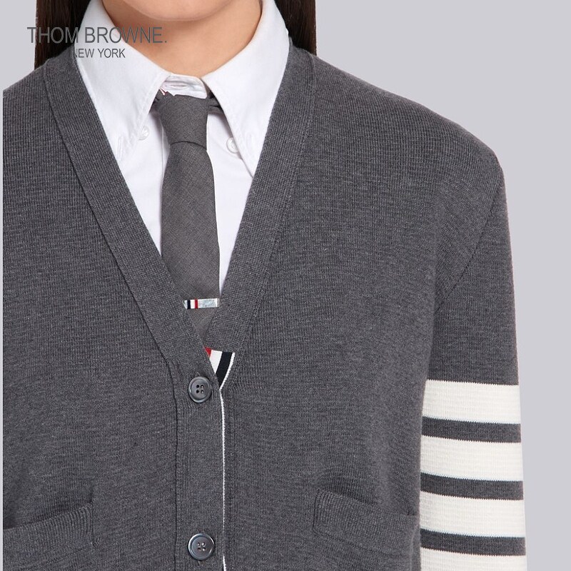 THOM BROWNE Women's Fall/Winter 2022 Mid Grey Four Stripes Cotton V-neck cardigan