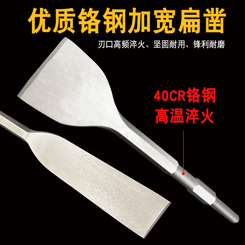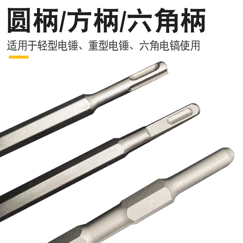 Square handle electric hammer drill shock drill head hexagonal shank electric pick head tip flat chisel round handle shovel head widening pick-hole notching shovel