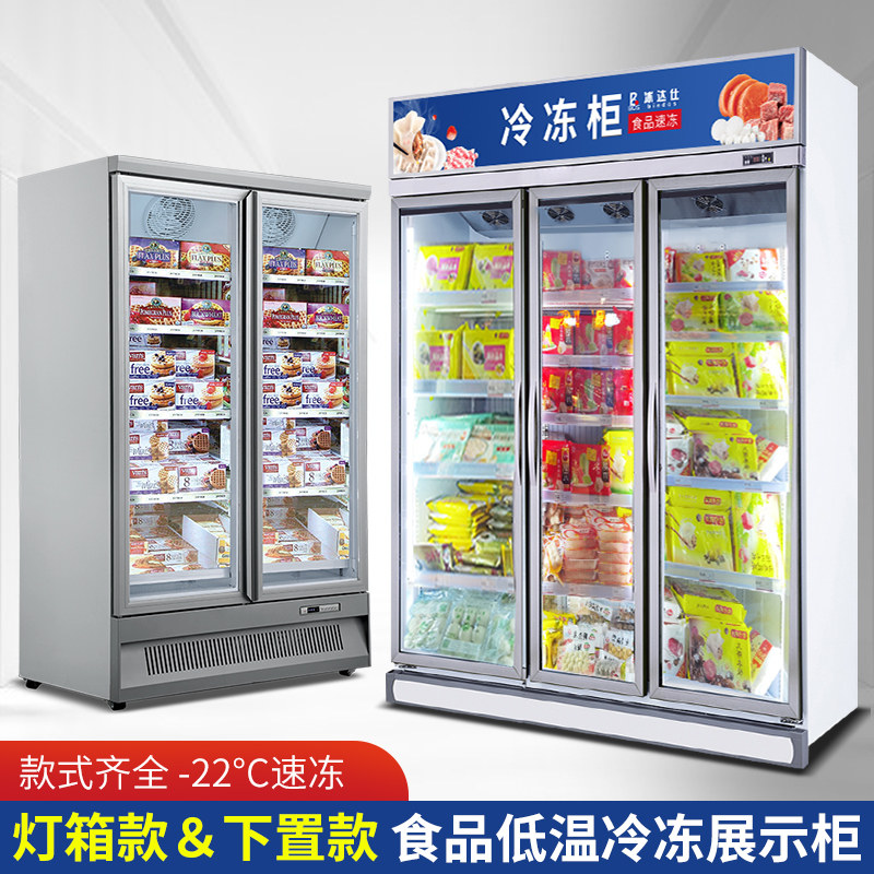 Single door set light box Frozen Display Cabinet Single Door Vertical Ice Cream Cabinet double door Lower Frozen Display Cabinet Double Door Upper Placed Lightbox style Frozen Display Cabinet Double Door Vertical Ice Cream Cabinet Three Doors Down of Frozen Display