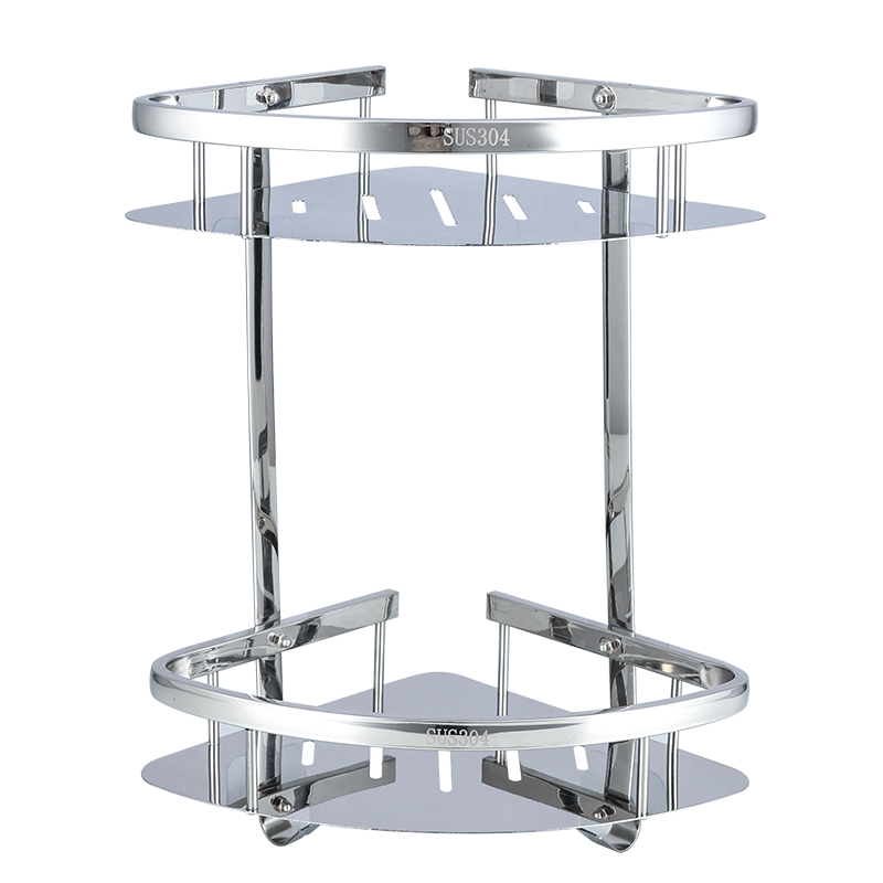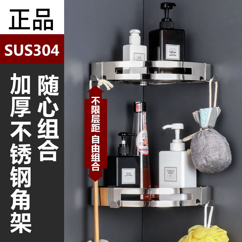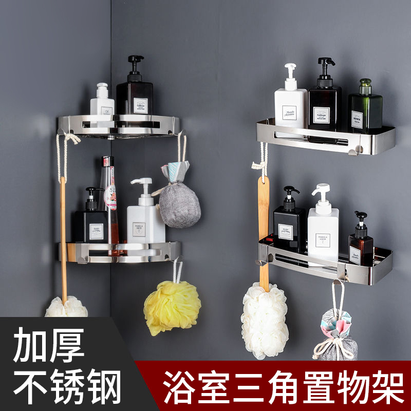 Punch-free SUS304 stainless steel tripod rectangular rack hotel bathroom triangle basket powder room corner rack