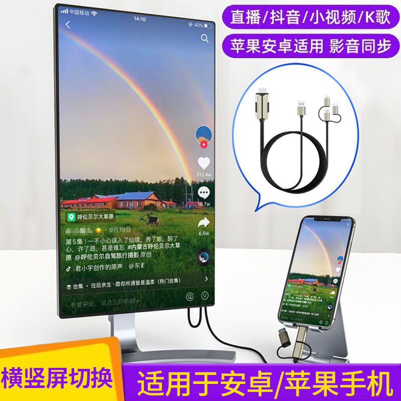 Co-Screen Wired Phone Connected to TV Conversion Line HD Screen Application of Android Apple Vertical Screen Live Small Pictures
