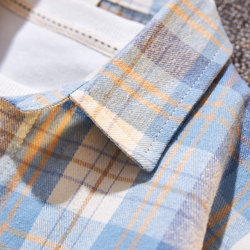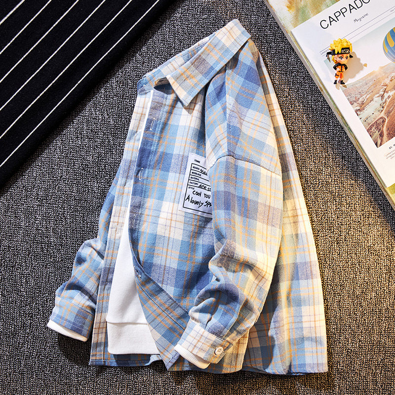Male Great Boy Shirt Spring Autumn Pure Cotton Boy Plus Suede 2021 New Tide Long Sleeve Plaid Handsome Gas Boy Shirt Jacket