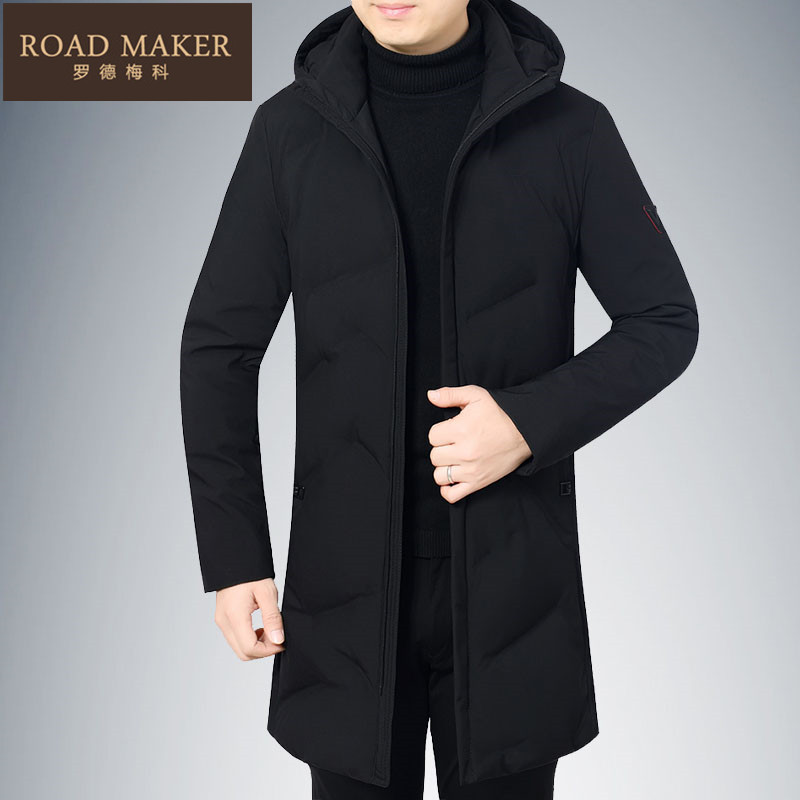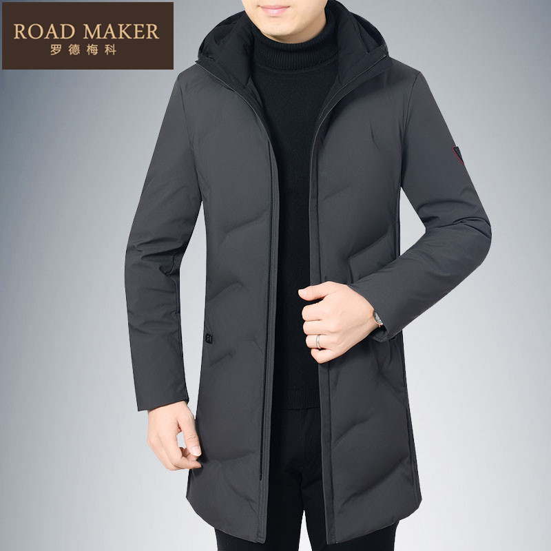 ROADMAKER2021 Winter new men's thickened down clothes middle-aged duck suede jacket with long version of dads