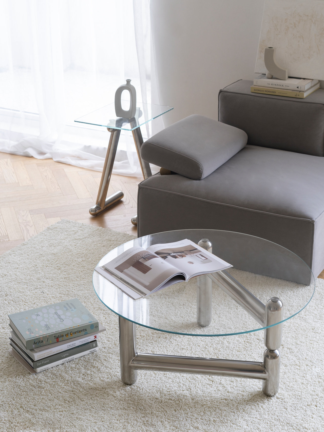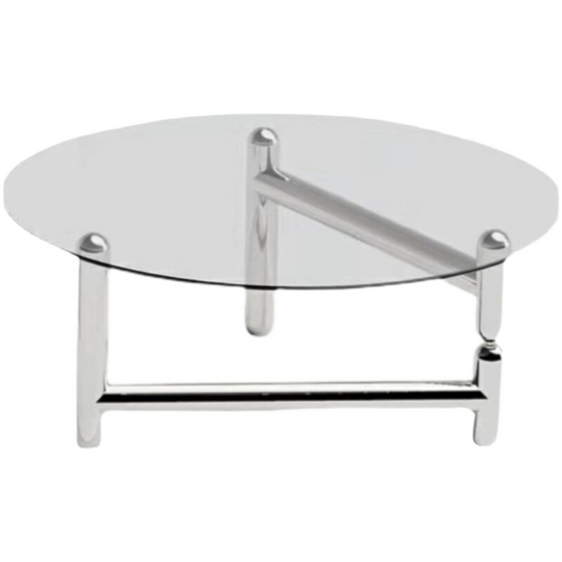 Medieval light luxury metal coffee table small apartment stainless steel round glass table size apartment modern minimalist net red table