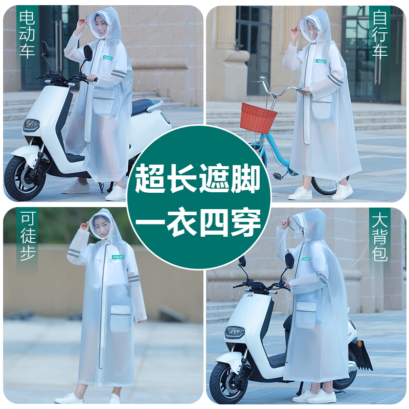 TPU raincoat women's long version fashion full body anti-storm transparent men's riding poncho electric car bicycle with mask