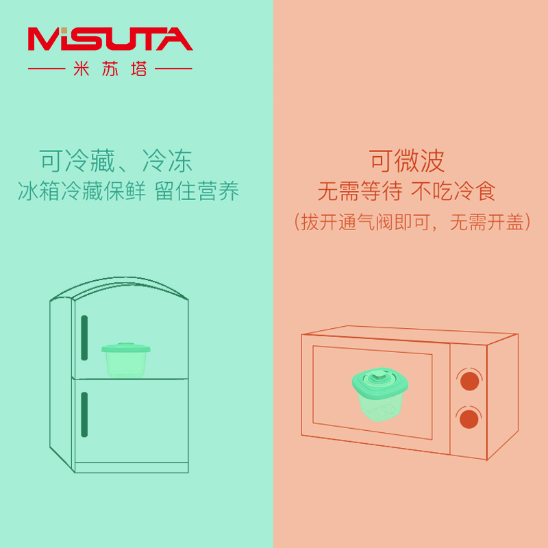 Misuta baby non-staple food storage box outgoing snacks portable fresh-keeping box sealed sub-packaging baby timing non-staple food grid