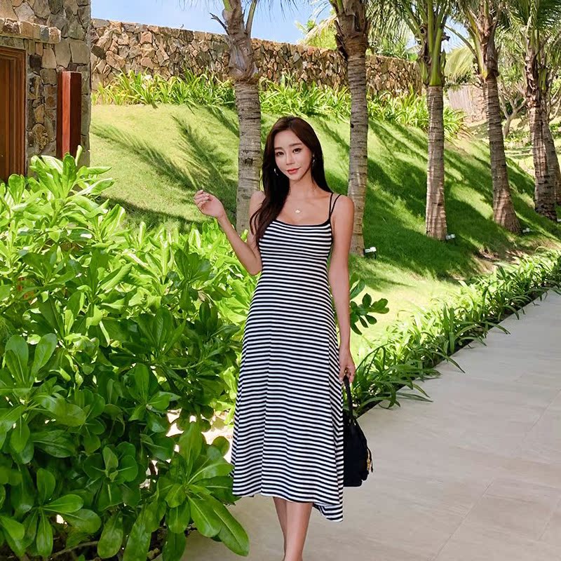 Beach long skirt Summer seaside Sanya Bali Holiday Sexy cross dew Bag Chest Cushion Harness Foreign Dress