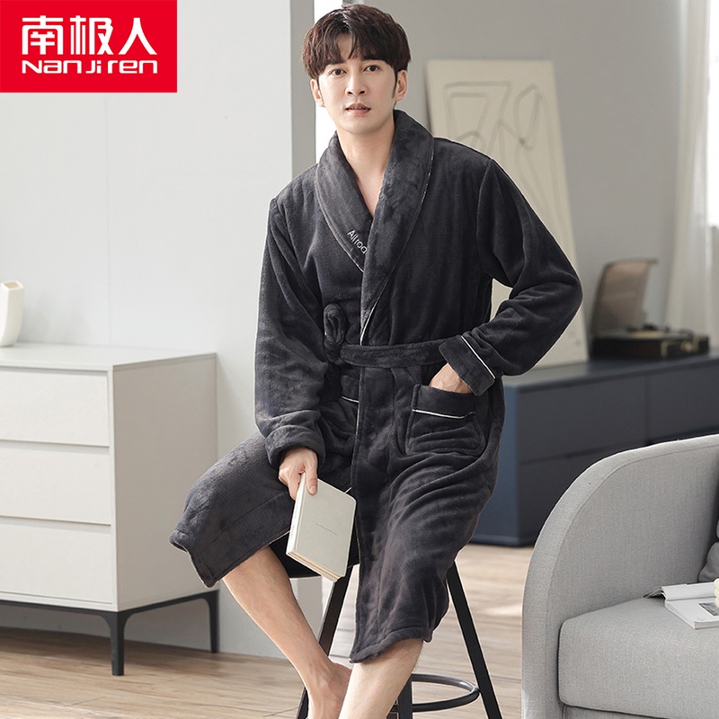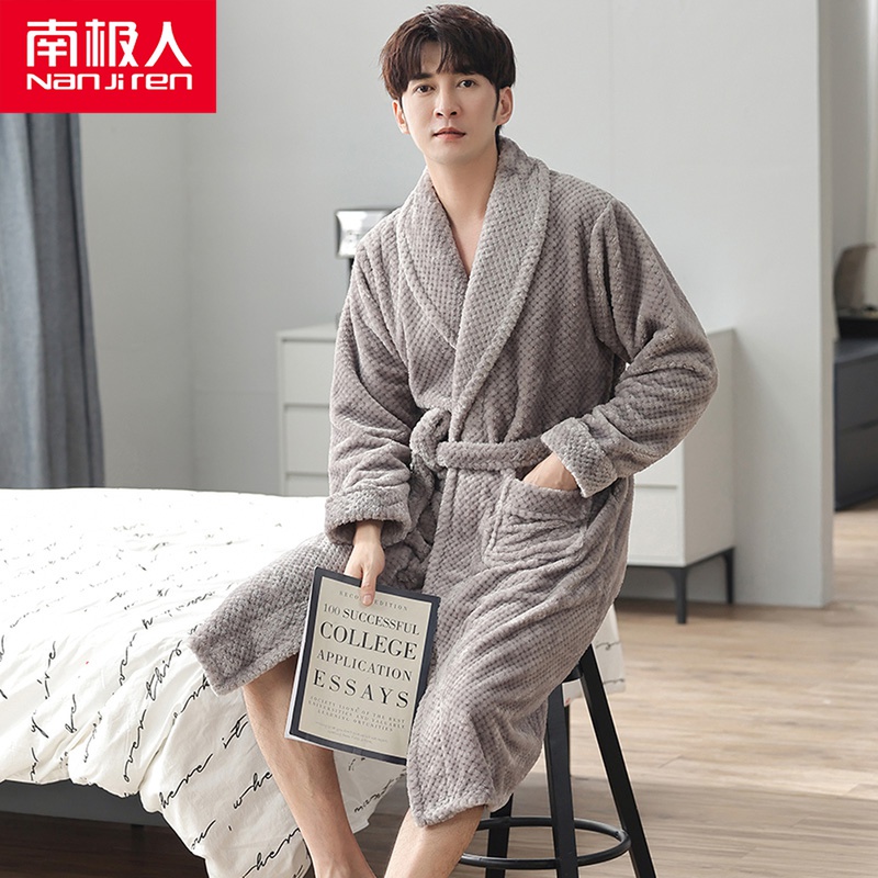 Sleeping robe men's winter coral suede thickened garnter warm autumn and winter style flange suede long version bathrobe pyjamas home clothes
