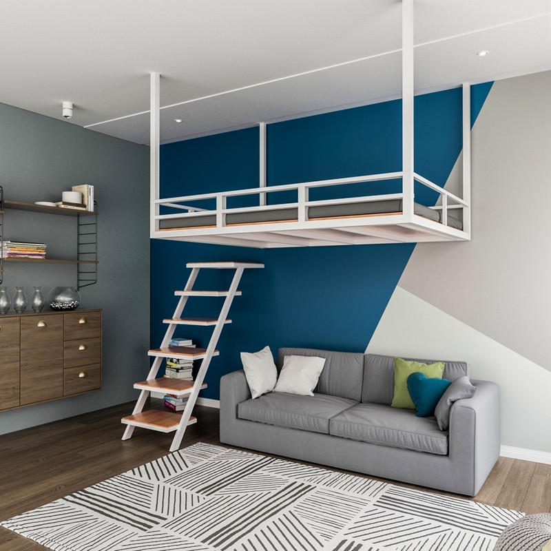 Provincial space elevated bed Simple modern suspension bed hammock Hanging Bay bed small household attic bed bed under bed