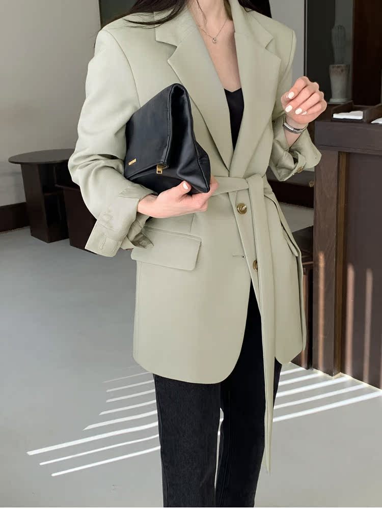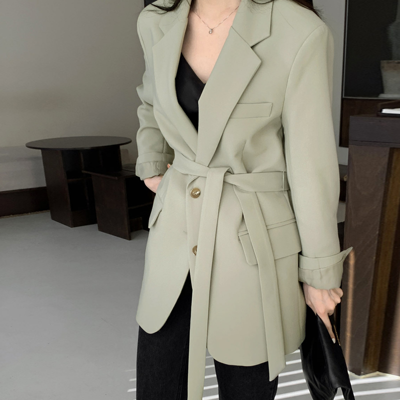 Green Small Suit Jacket Lady Spring Autumn Style Superior Temperament Casual Cashew Lace Suit for a long version in Western-style dress