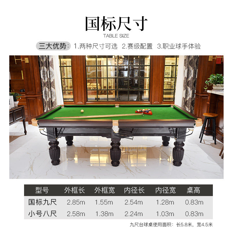 Billiard table American indoor Chinese black eight adult standard billiard table household commercial table tennis two-in-one