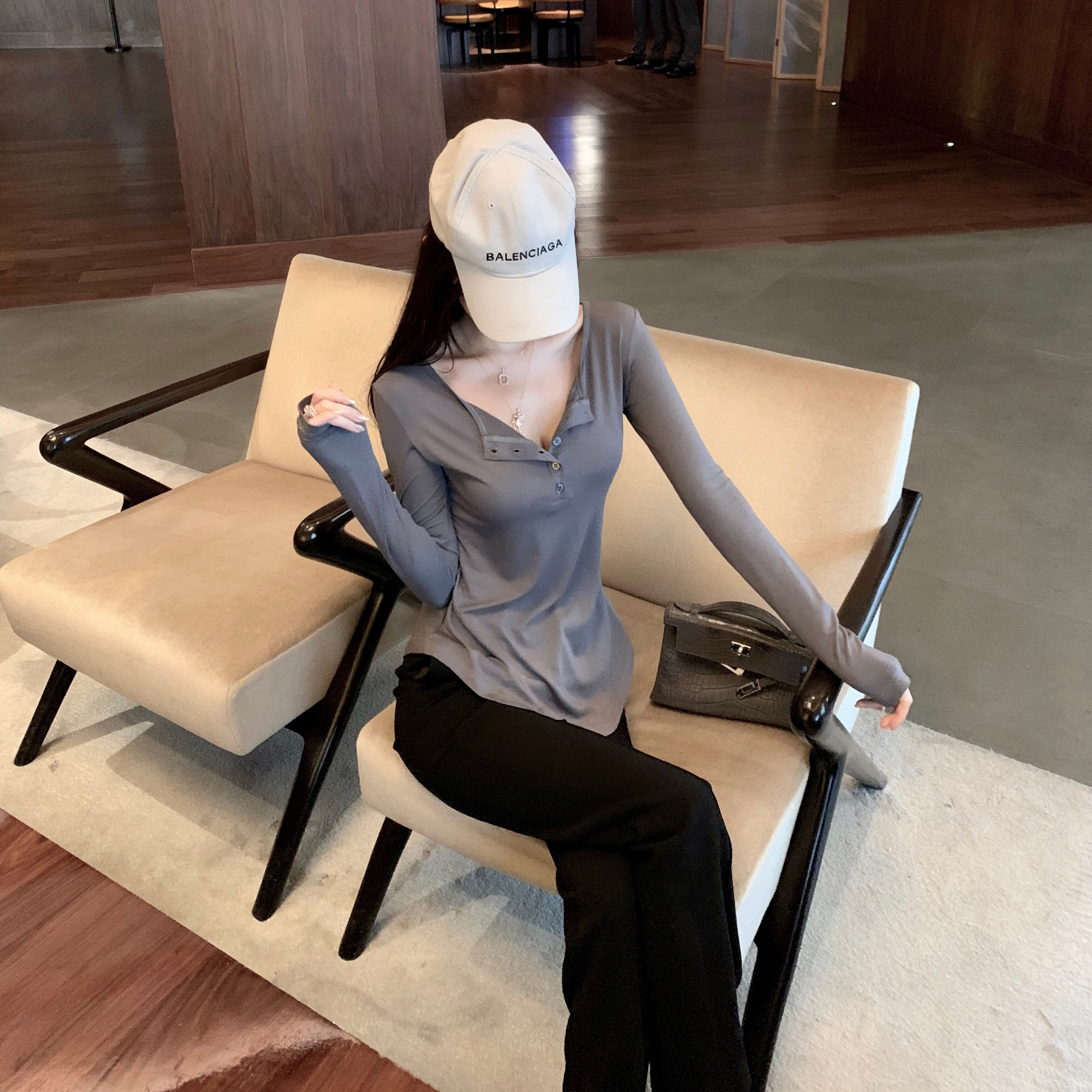 CHICYOU (Department of Fishing Pure Desire) to fix in pure color inner lap with long sleeves tight sleeve head T-shirt blouse
