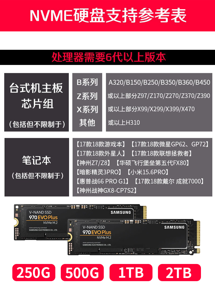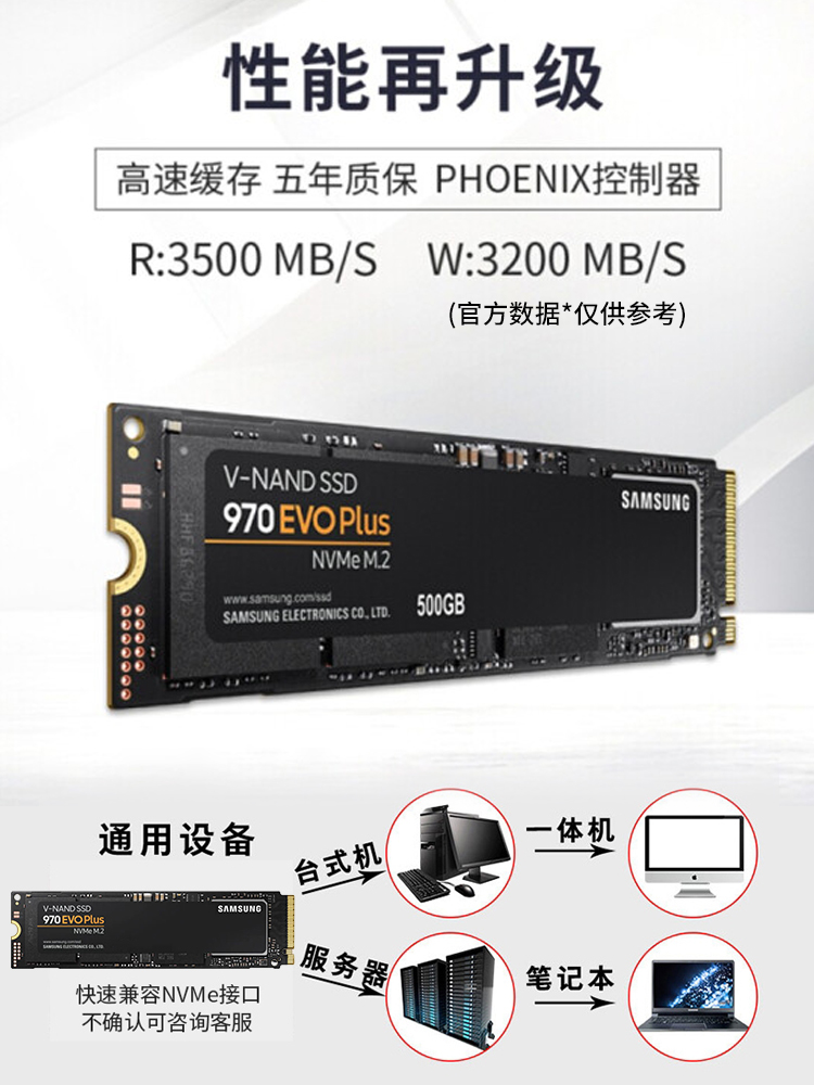 Samsung solid-state hard disc m 2 970EVOPlus 500G pcie nvme notebook desktop ssd