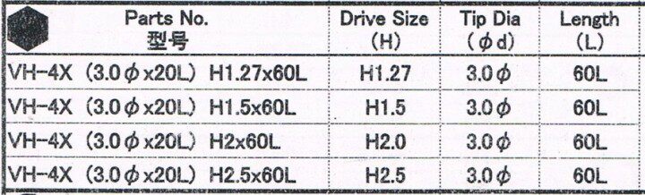 Original Japanese OHMI VH-4X-H1 27 1 5 2 2 5mm * 60L Electric screwdrivers head hexagonal batch