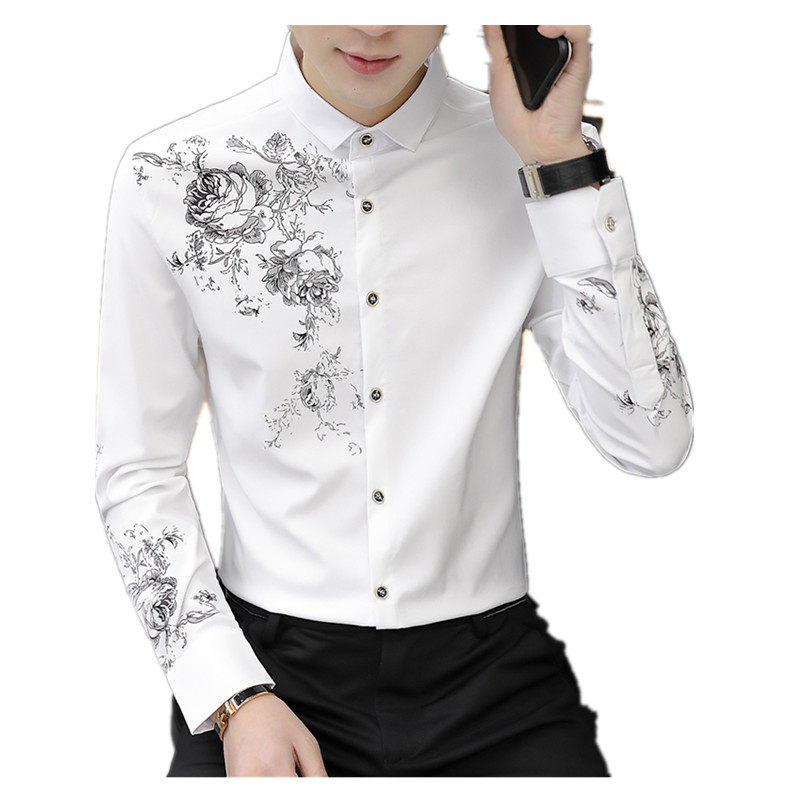 2022 autumn new trendy brand men's printed shirt men's long-sleeved trendy handsome high-end shirt personality inch shirt