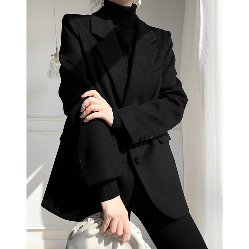 sandro moskoloni black hairy little suit jacket female autumn winter loose thickened wool west suit blouse