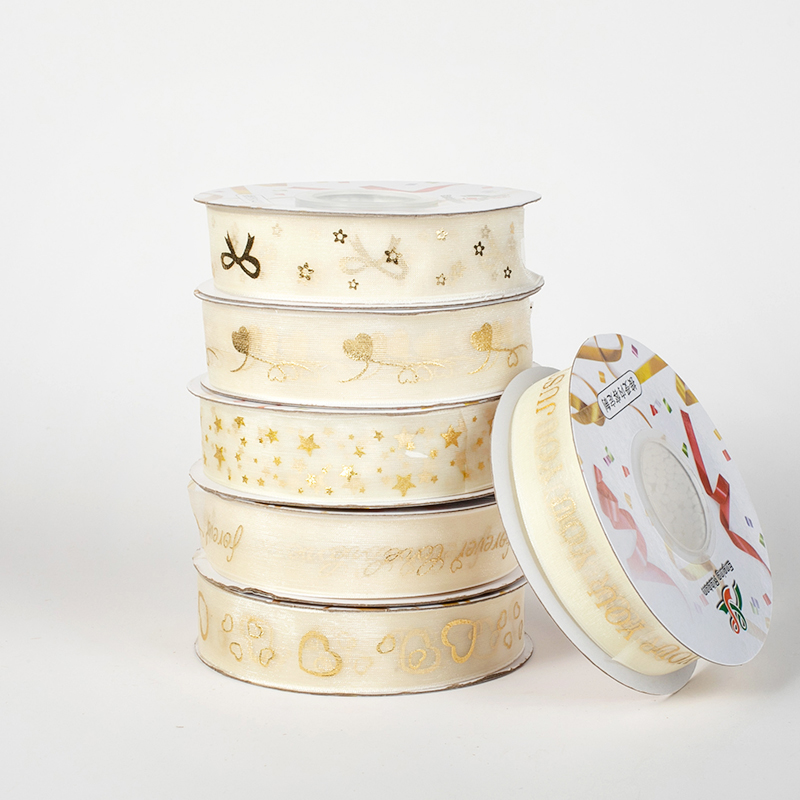 Snow yarn ribbon colored with gift cake box packing satin with flower bunches bronzed and decorated butterfly knot