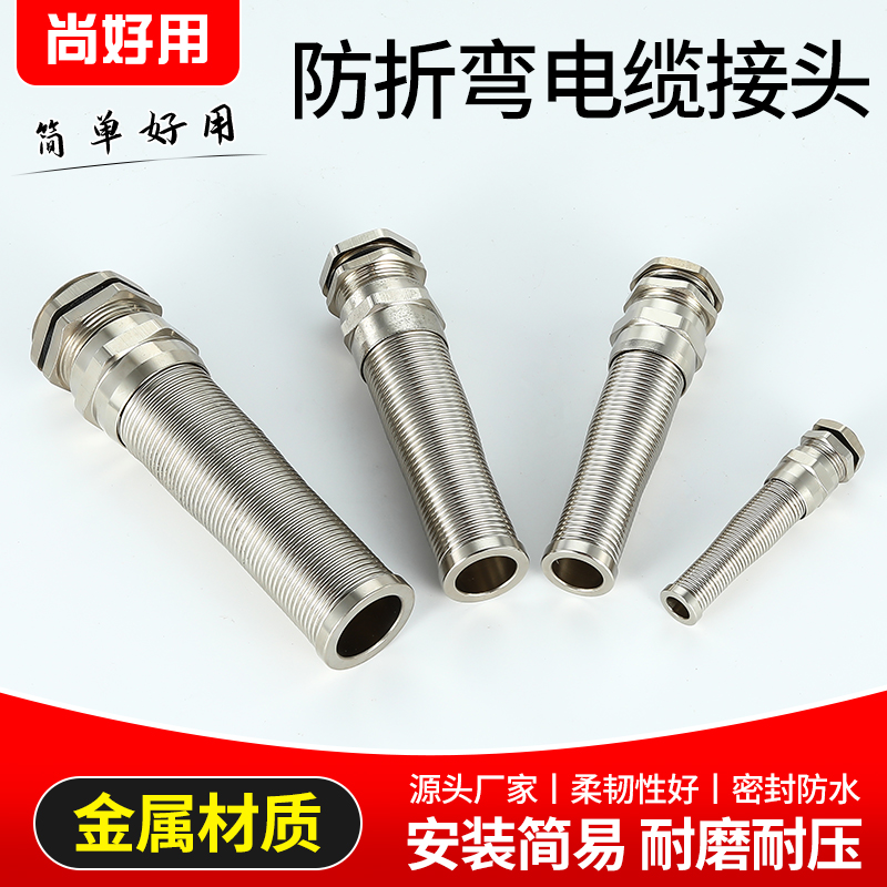 Bending metal cable waterproof joint spring two-piece stainless steel gram head brass fixed nickel plated connector