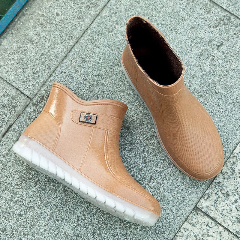 Short drum adult fashion waterproof shoes and rainboots female summer work anti-slip shoes student Han Edition warm shoes