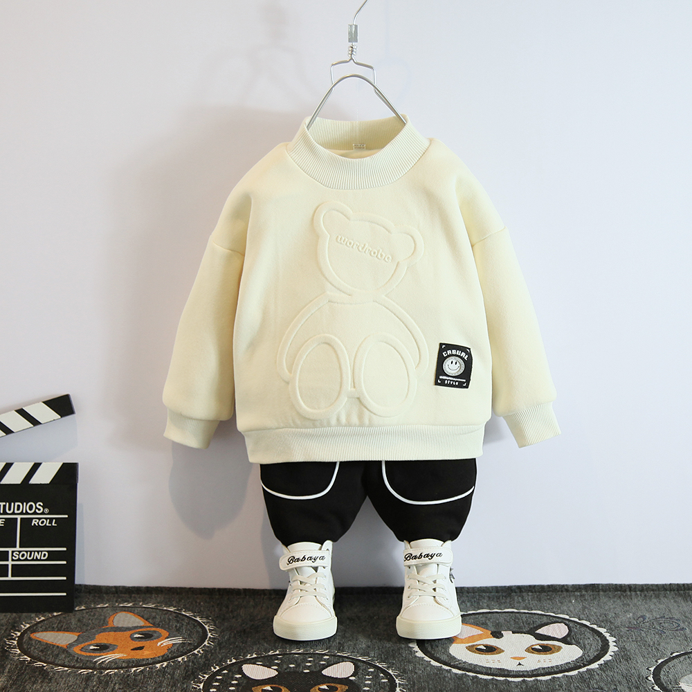 Boys' winter clothes plus fleece sweater 22 winter new baby cartoon cotton top children's thickened bear bottoming shirt tide