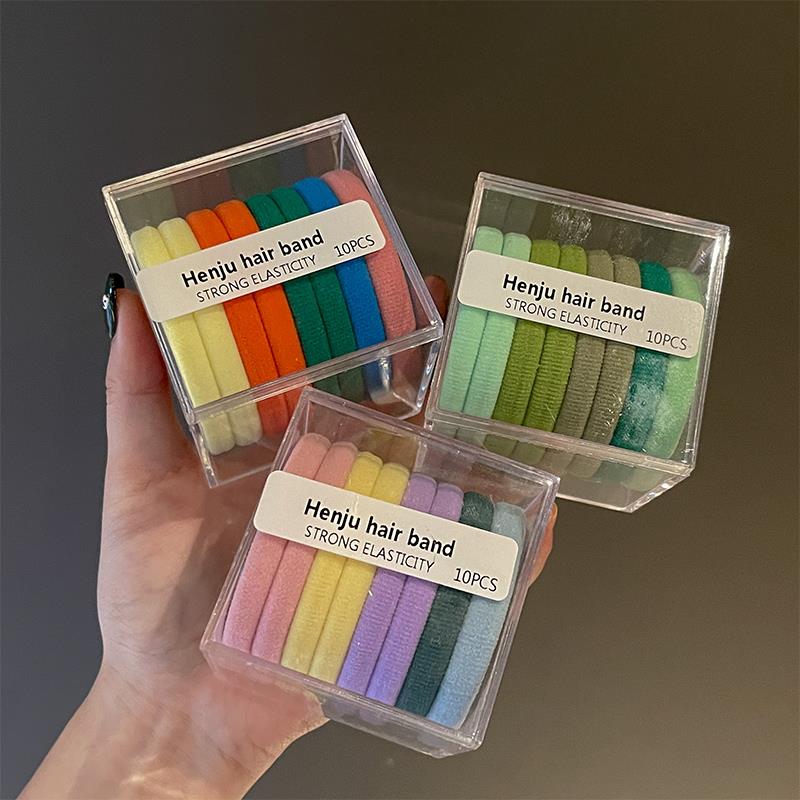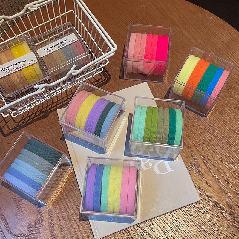 Box 10 colored small rubber bands high elastic hair ring tip hair tail of horse hair circle simple temperament hair ring