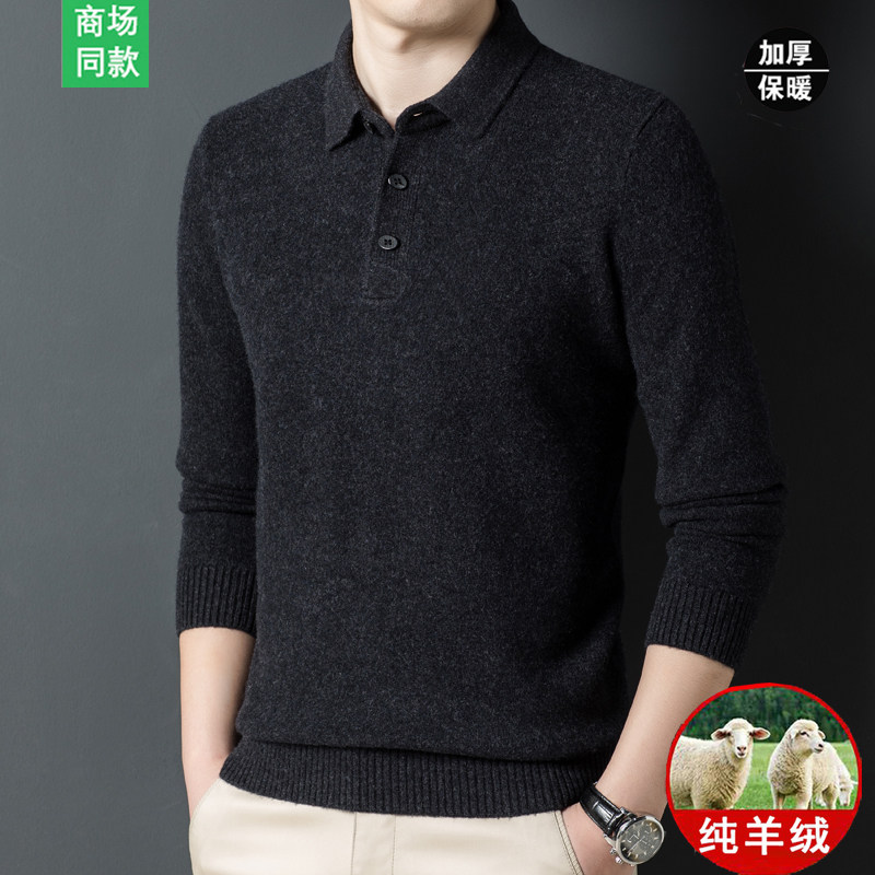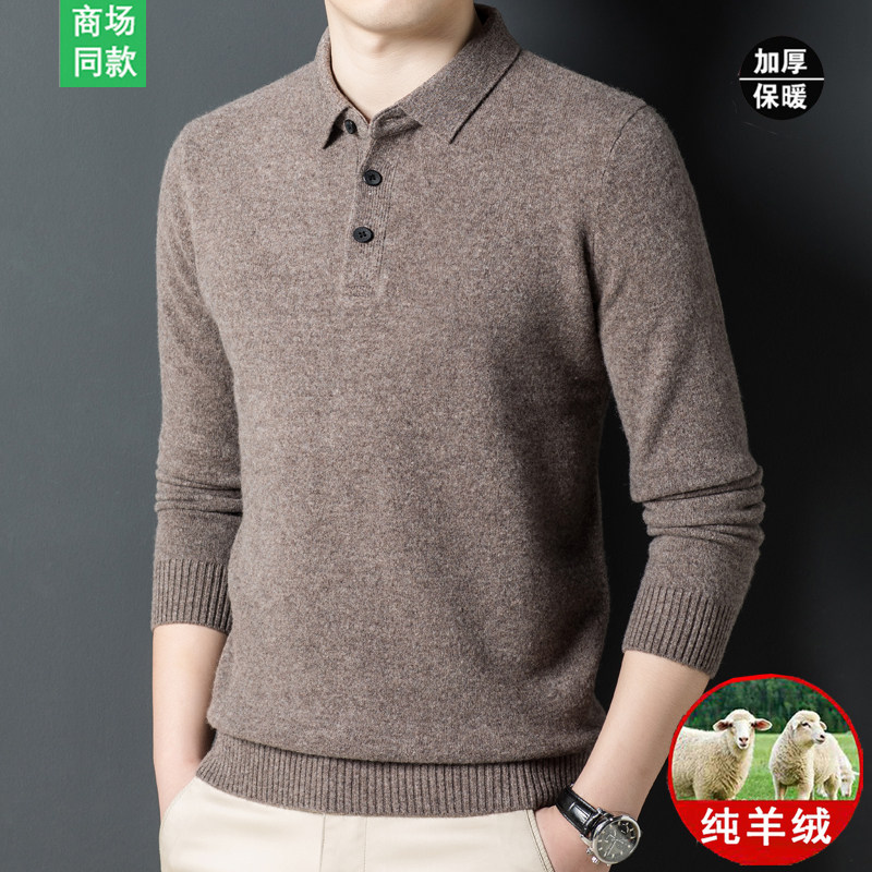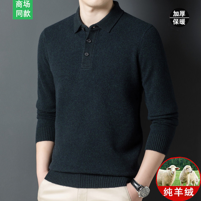 Spring bamboo cashmere sweatshirt man 100% pure cashmere long sleeve T-shirt collar wool sweater winter thickened middle-aged men sweater