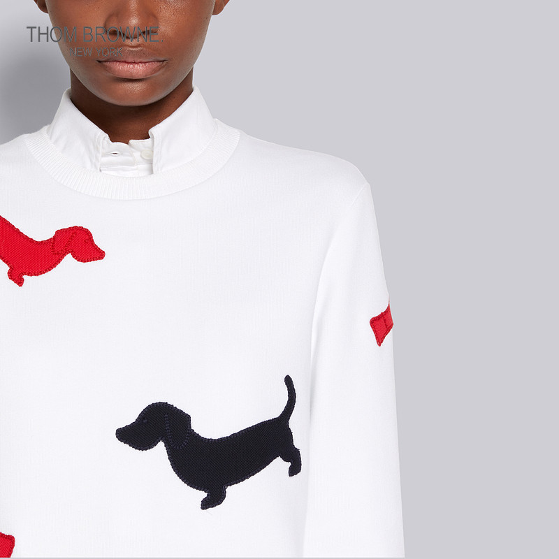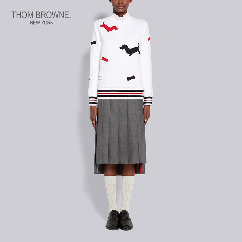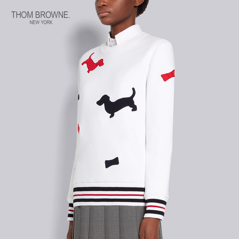 (48H Distribution) THOM BROWNE Lady Spring Summer Classic Round Neckline Embroidered Hooded Sweatshirt
