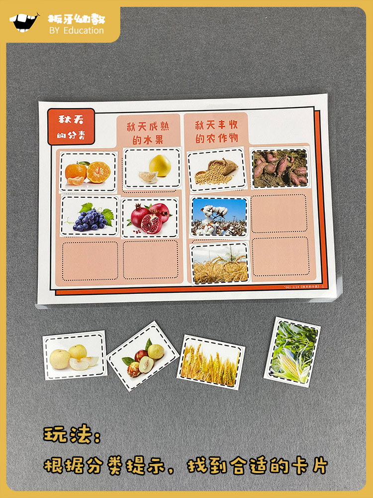 Kindergarten item classification autumn theme puzzle small middle class life science area materials self-made teaching materials early education