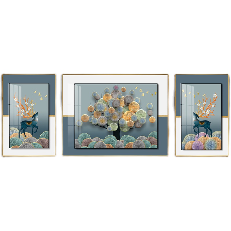Living room sofa background wall painting decorative painting modern minimalist Nordic light luxury mural creative triple crystal porcelain painting