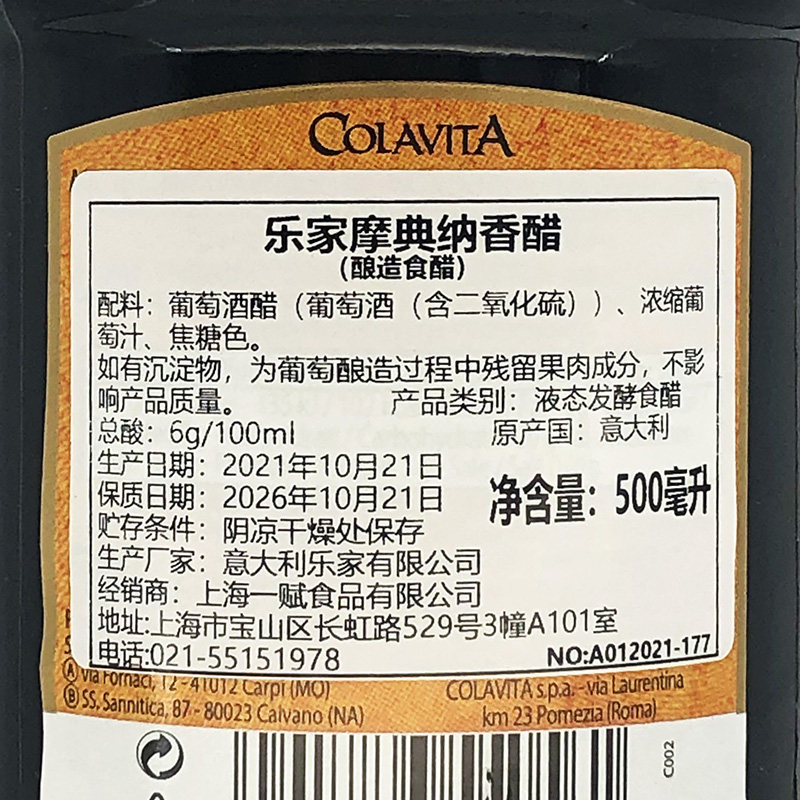 Italian Imported Legit Card Moronna Balsamic Vinegar 500ml Wine Vinegar Fruit Vinegar Salad Vinegar Western