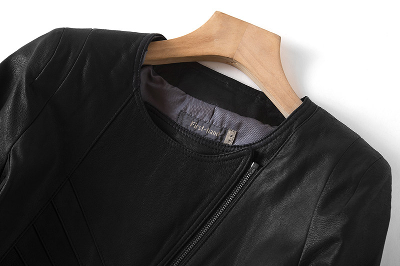 2021 Black Round Collar Layer Mountain Goat Leather Leather Leather Clothing Lady Short leather jacket Jacket Locomotive Jacket Mantra