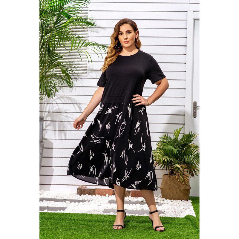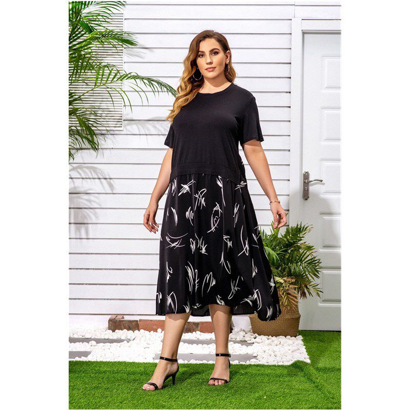 L-5XL summer women dresses plus size fat ladies printing skirt