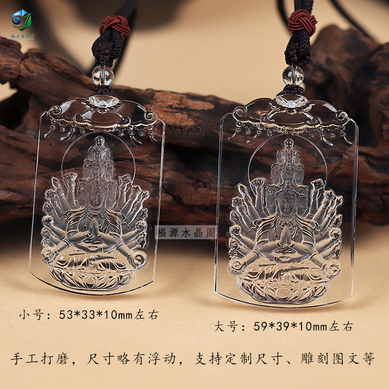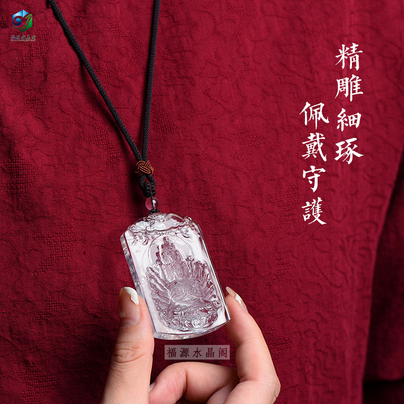 Carved natural white crystal thousand-hand Guanyin pendant national wind Bodhisattva's life Buddha guardian deity jewelry pendant customization