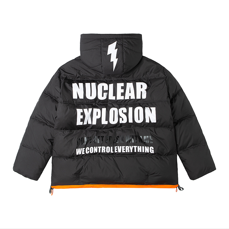 Nuclear Explosion 2021 Black Lightning Badge Laced Super Warm Thickening Tandem Hat Bunk Cotton Jacket Loose Casual Large Size Cotton Coat
